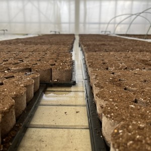 この作業は、交配(受粉・花粉付け)作業をスムーズにする為のに行う。雌花がテントの中で開花する様に配置し又蔓先を揃える。孫蔓が繁茂しない様に除去することも重要。スイカの果実は1番果から3番果まで除去し4番果に交配をする。