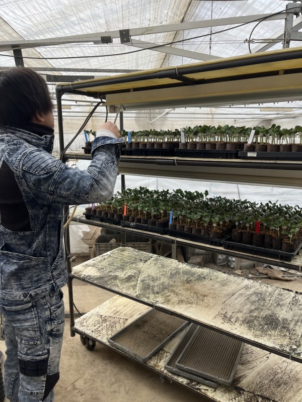 暗く暖かい養生室で「台木」と「穂木」がしっかり手を取り合った苗たちは、今日から太陽の光を浴びるステージへ。